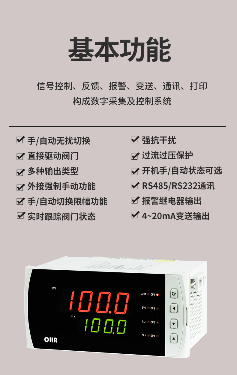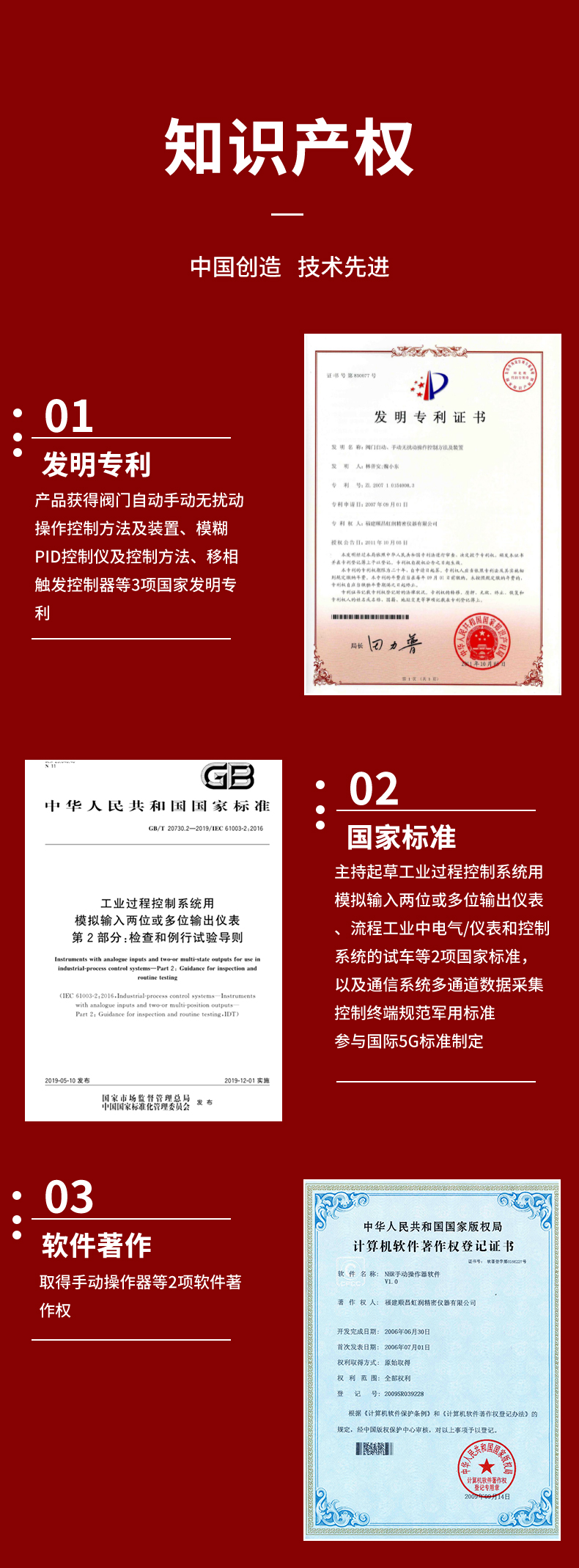 虹潤公司是專業(yè)生產(chǎn)智能手操器的國家專精特新“小巨人”企業(yè),生產(chǎn)的手動操作器,具有手自動無擾切換,直接調(diào)節(jié)閥門,多種輸出類型,外接強制手動功能,高抗干擾等特點。產(chǎn)品獲得閥門自動手動無擾動操作控制方法及裝置、模糊PID控制儀及控制方法、移相觸發(fā)控制器等3項國家標準,主持起草工業(yè)過程控制系統(tǒng)用模擬輸入兩位或多位輸出儀表、流程工業(yè)中電氣/儀表和控制系統(tǒng)的試車等2項國家標準,以及通信系統(tǒng)多通道數(shù)據(jù)采集控制終端規(guī)范軍用標準,參與國際5G標準制定,取得手動操作器等3項相關軟件著作權。產(chǎn)品廣泛應用于電力、石化、冶金、化工、造紙、食品、輕工、制藥、熱處理、水處理、機械配套等各種工業(yè)現(xiàn)場。