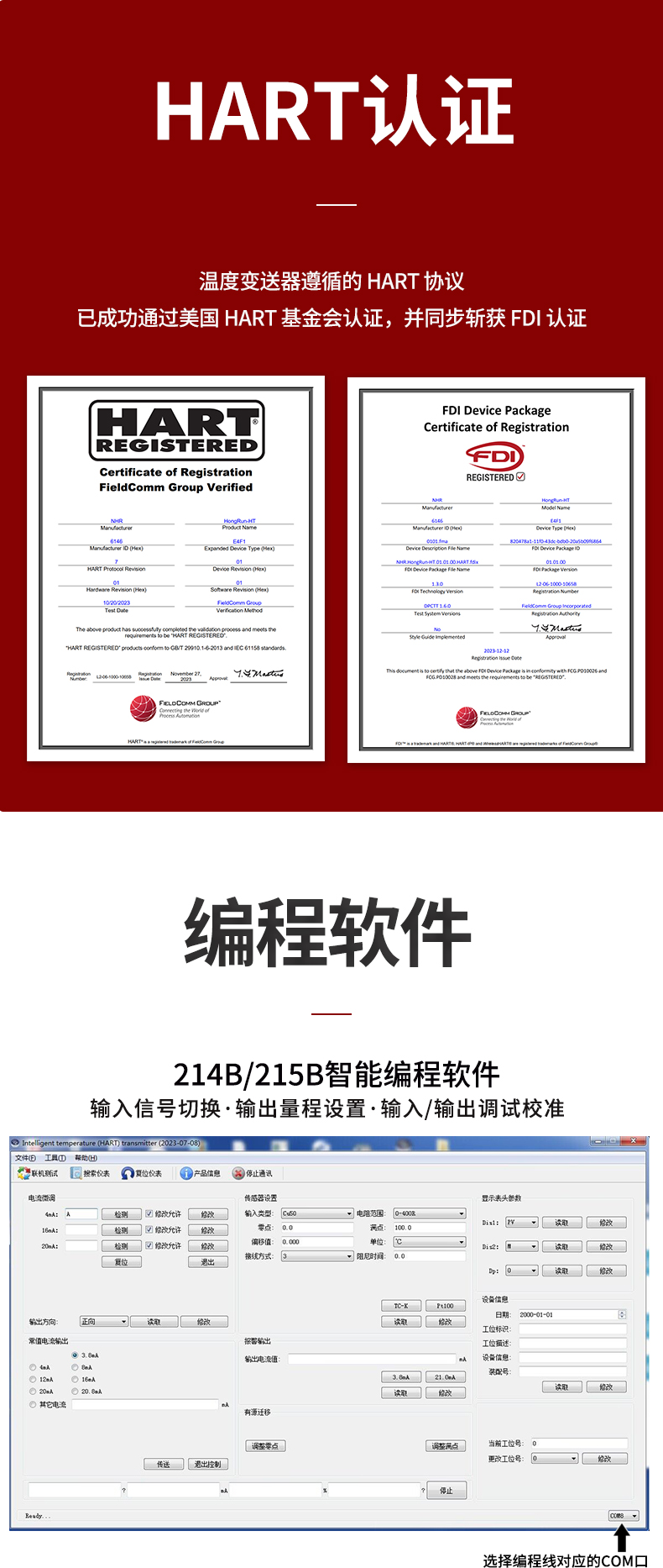 虹潤(rùn)公司是專業(yè)生產(chǎn)溫度變送器的國(guó)家專精特新“小巨人”企業(yè)。生產(chǎn)的智能溫度變送器,具有適配各類溫度傳感器,精度高,穩(wěn)定性好,通過(guò)編程線修改輸入信號(hào)類型及量程,高抗干擾等特點(diǎn)。該產(chǎn)品不僅通過(guò)HART基金會(huì)認(rèn)證、德國(guó)萊茵 CE 認(rèn)證與 SIL 功能安全認(rèn)證,還獲得具備減震抗干擾能力的溫度變送器、信號(hào)隔離器、一種二端子模塊、無(wú)源信號(hào)隔離器等4項(xiàng)國(guó)家發(fā)明專利,主持起草物聯(lián)網(wǎng)智能溫度儀表、現(xiàn)場(chǎng)設(shè)備工具(FDT)接口規(guī)范、工業(yè)過(guò)程測(cè)量和控制系統(tǒng)用溫度變送器等3項(xiàng)國(guó)家標(biāo)準(zhǔn),以及通信系統(tǒng)多通道數(shù)據(jù)采集控制終端規(guī)范軍用標(biāo)準(zhǔn),參與國(guó)際5G標(biāo)準(zhǔn)制定,取得智能溫度變送器、HART溫度變送器等3項(xiàng)相關(guān)軟件著作權(quán)。產(chǎn)品廣泛應(yīng)用于石油、化工、電力、冶金、制藥、食品、水處理等各種工業(yè)領(lǐng)域。
