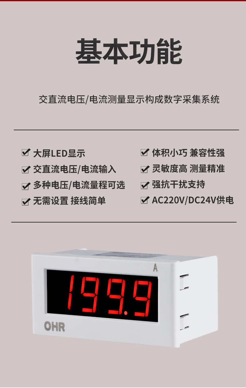 虹潤公司是專業(yè)生產(chǎn)數(shù)字電壓表的國家專精特新“小巨人”企業(yè)。生產(chǎn)的電壓/電流表,具有大屏LED顯示,交直流電壓/電流輸入,免設(shè)置易接線,性價(jià)比高等特點(diǎn)。產(chǎn)品獲得一種交流信號變送器、交直流信號轉(zhuǎn)換電路、基于DCS技術(shù)的盤裝式三相電量表等3項(xiàng)國家發(fā)明專利,主持起草現(xiàn)場設(shè)備集成等5項(xiàng)智能制造國家標(biāo)準(zhǔn),物聯(lián)網(wǎng)電流變送器規(guī)范、物聯(lián)網(wǎng)總體技術(shù)智能傳感器特性與分類等2項(xiàng)國家標(biāo)準(zhǔn),以及直流漏電流傳感器規(guī)范、通信系統(tǒng)多通道數(shù)據(jù)采集控制終端規(guī)范等2項(xiàng)軍用標(biāo)準(zhǔn),參與國際5G標(biāo)準(zhǔn)制定。產(chǎn)品廣泛應(yīng)用于電力系統(tǒng)、工業(yè)制造、自動化設(shè)備、計(jì)量檢測等各種工業(yè)領(lǐng)域。