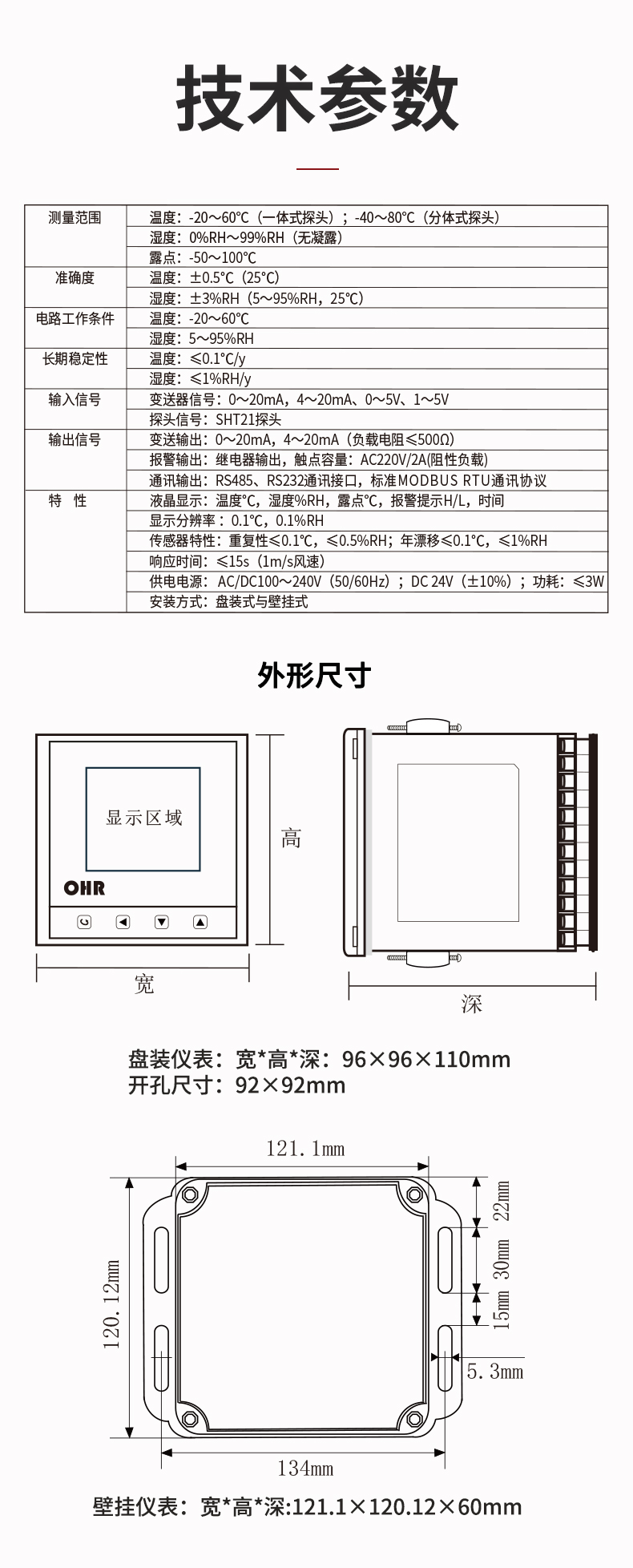 OHR-WS10系列溫濕度控制儀以先進的32位ARM處理器為核心,采用進口高性能溫濕度傳感器,可同時對被測環(huán)境的溫度、濕度進行測量和控制,并可通過溫、濕度計算出露點。它具有精度高、穩(wěn)定性強、響應(yīng)速度快等特點,適用于通訊機房、辦公室、醫(yī)院、檔案館、博物館、賓館、樓宇自控等場所的溫濕度測量。