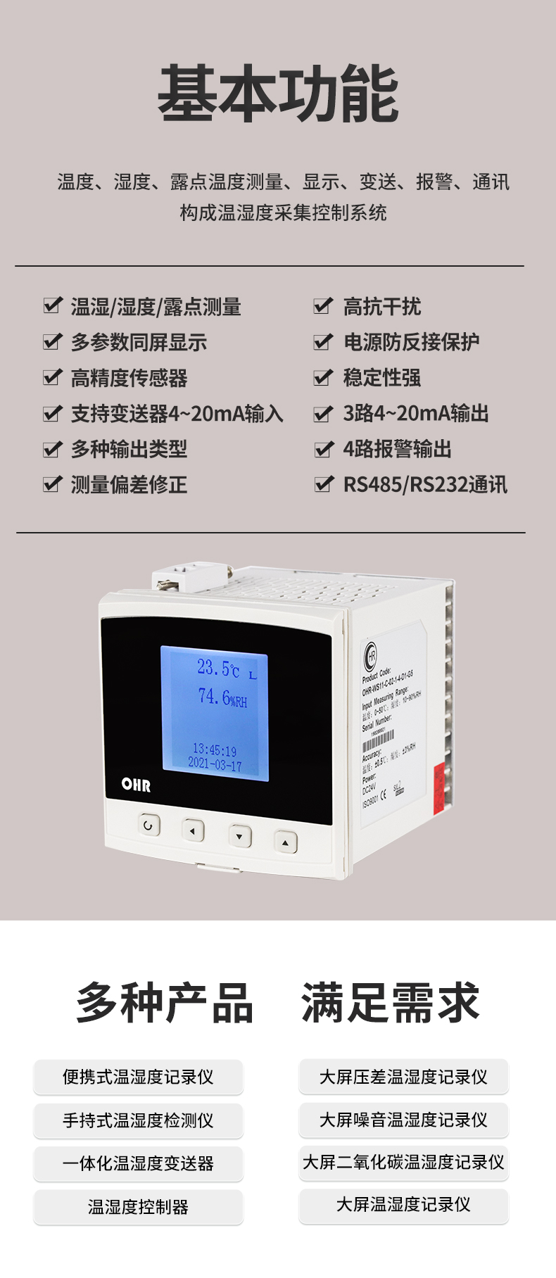 OHR-WS10G系列溫濕度控制儀以先進(jìn)的32位ARM處理器為核心,采用進(jìn)口高性能溫濕度傳感器,可同時(shí)對(duì)被測(cè)環(huán)境的溫度、濕度進(jìn)行測(cè)量和控制,并可通過(guò)溫、濕度計(jì)算出露點(diǎn)。它具有精度高、穩(wěn)定性強(qiáng)、響應(yīng)速度快等特點(diǎn),適用于通訊機(jī)房、辦公室、醫(yī)院、檔案館、博物館、賓館、樓宇自控等場(chǎng)所的溫濕度測(cè)量。
