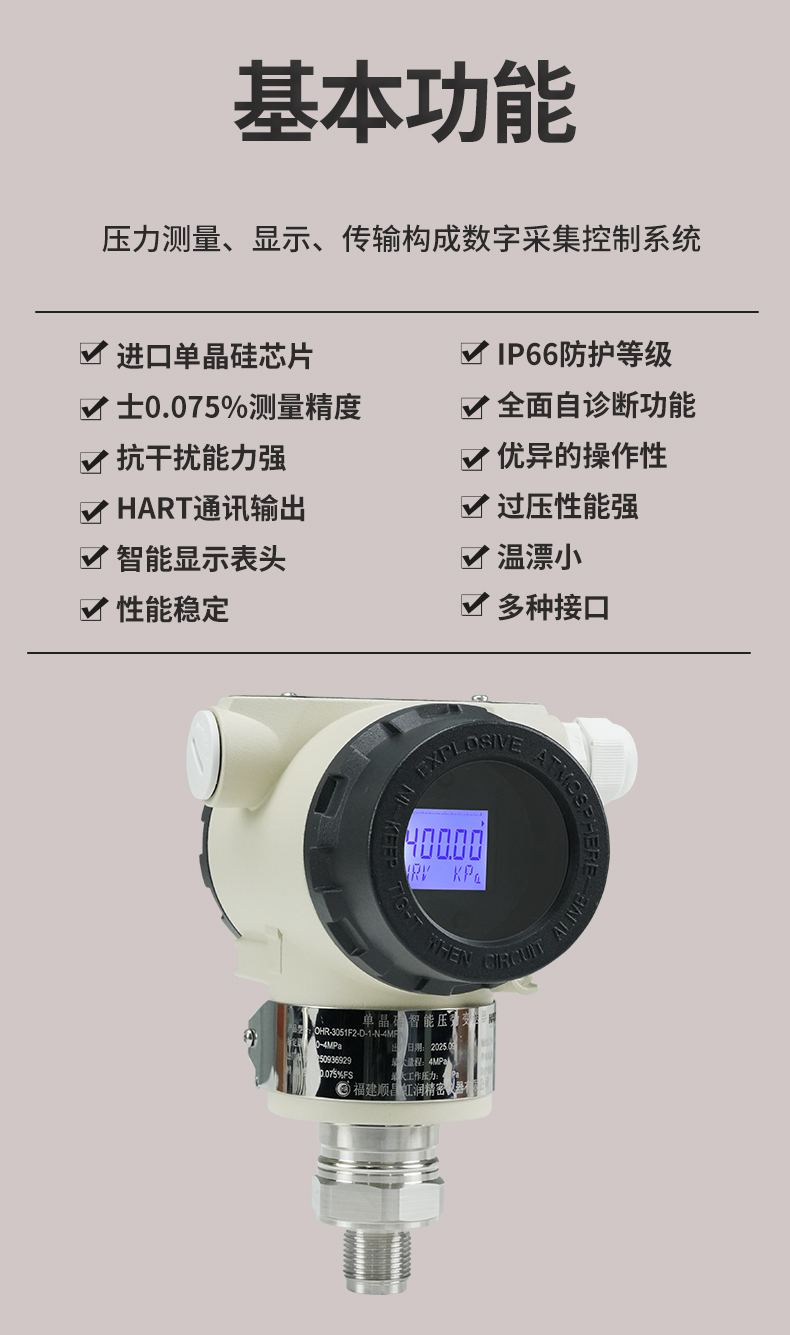 虹潤公司是專業(yè)生產(chǎn)壓力變送器的國家專精特新“小巨人”企業(yè),生產(chǎn)的單晶硅壓力變送器,具有高精度,小溫漂,性能穩(wěn)定,帶HART通訊,抗干擾能力強(qiáng),自診斷功能等特點(diǎn)。產(chǎn)品獲得一種數(shù)字顯示低功耗壓力表、一種信號發(fā)生器裝置等2項(xiàng)國家發(fā)明專利,主持起草工業(yè)過程控制系統(tǒng)用模擬輸入兩位或多位輸出儀表、工業(yè)過程測量和控制系統(tǒng)用壓力/差壓變送器等2項(xiàng)國家標(biāo)準(zhǔn),通信系統(tǒng)多通道數(shù)據(jù)采集控制終端規(guī)范軍用標(biāo)準(zhǔn),以及現(xiàn)場設(shè)備集成等5項(xiàng)智能制造國家標(biāo)準(zhǔn)。參與國際5G標(biāo)準(zhǔn)制定,取得數(shù)顯壓力表等2項(xiàng)相關(guān)軟件著作權(quán)。產(chǎn)品廣泛應(yīng)用于化工、食品、制藥、電力、設(shè)備配套、供暖、水處理、樓宇等行業(yè),需精準(zhǔn)測量流體壓力的現(xiàn)場。