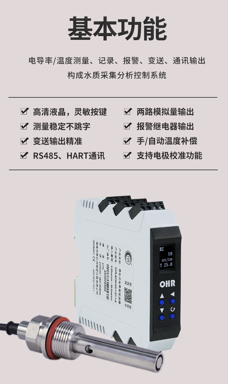 虹潤公司是專業(yè)生產(chǎn)水質(zhì)分析儀的國家專精特新“小巨人”企業(yè)。生產(chǎn)的導(dǎo)軌式電導(dǎo)率變送器,具有測量穩(wěn)定不跳字,液晶按鍵操控,變送輸出精準(zhǔn),寬范圍電源供電,RS485或HART通訊等特點(diǎn)。產(chǎn)品獲得一種信號發(fā)生裝置、智能化控制器等2項(xiàng)國家發(fā)明專利;主持起草現(xiàn)場設(shè)備集成等5項(xiàng)智能制造國家標(biāo)準(zhǔn),以及現(xiàn)場設(shè)備工具(FDT)接口規(guī)范、工業(yè)過程控制系統(tǒng)用模擬輸入兩位或多位輸出儀表、過程分析技術(shù)系統(tǒng)等3項(xiàng)國家標(biāo)準(zhǔn);參與國際5G標(biāo)準(zhǔn)制定,取得導(dǎo)軌電導(dǎo)率變送器等3項(xiàng)相關(guān)軟件著作權(quán)。產(chǎn)品廣泛應(yīng)用于實(shí)驗(yàn)室、水處理、環(huán)境監(jiān)測、制藥、食品、農(nóng)業(yè)、工業(yè)流程控制等諸多領(lǐng)域。