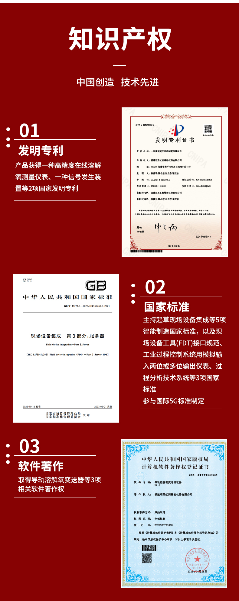 虹潤(rùn)公司是專(zhuān)業(yè)生產(chǎn)水質(zhì)分析儀的國(guó)家專(zhuān)精特新“小巨人”企業(yè)。生產(chǎn)的導(dǎo)軌式溶解氧變送器,具有測(cè)量穩(wěn)定不跳字,液晶按鍵操控,變送輸出精準(zhǔn),寬范圍電源供電,RS485或HART通訊等特點(diǎn)。產(chǎn)品獲得一種高精度在線(xiàn)溶解氧測(cè)量?jī)x表、智能化控制器、一種信號(hào)發(fā)生裝置等3項(xiàng)國(guó)家發(fā)明專(zhuān)利;主持起草現(xiàn)場(chǎng)設(shè)備集成等5項(xiàng)智能制造國(guó)家標(biāo)準(zhǔn),以及現(xiàn)場(chǎng)設(shè)備工具(FDT)接口規(guī)范、工業(yè)過(guò)程控制系統(tǒng)用模擬輸入兩位或多位輸出儀表、過(guò)程分析技術(shù)系統(tǒng)等3項(xiàng)國(guó)家標(biāo)準(zhǔn);參與國(guó)際5G標(biāo)準(zhǔn)制定,取得導(dǎo)軌溶解氧變送器等3項(xiàng)相關(guān)軟件著作權(quán)。產(chǎn)品廣泛應(yīng)用于實(shí)驗(yàn)室、水處理、環(huán)境監(jiān)測(cè)、制藥、食品、農(nóng)業(yè)、工業(yè)流程控制等諸多領(lǐng)域。